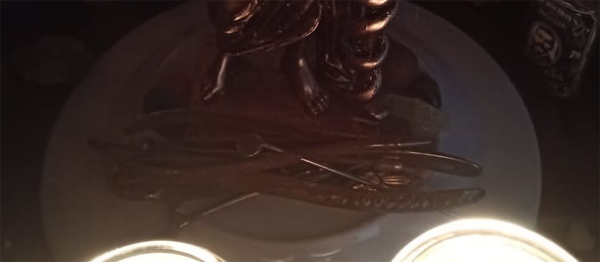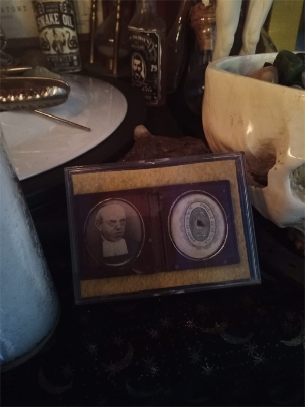 Also adorning the altar are medical tools once used by an ancestor of Reverend Saint Germain, John Riggs (1848 - 1915), who despite having no formal medical training was able to self-educate himself and served as the community doctor in Campbell County, TN.