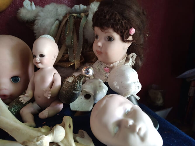 The Altar of Broken Dreams is a section of Divine Harmony Spiritual Church that is devoted solely to Jinx work. The altar is home to a large collection of children's dolls - each one with a grim backstory. Over the course of a lifetime, Reverend Saint Germain has collected these dolls from broken families, tragic deaths, cursed or jinxed households, found in haunted buildings, destroyed in catastrophic acts of nature, one from a family who begged the Reverend to take it off their hands. Some were privy to the last words of dying individuals. These dolls have witnessed the worst of mankind's misfortunes and depravities and, when properly enticed, will pass them on to the target of your anger.